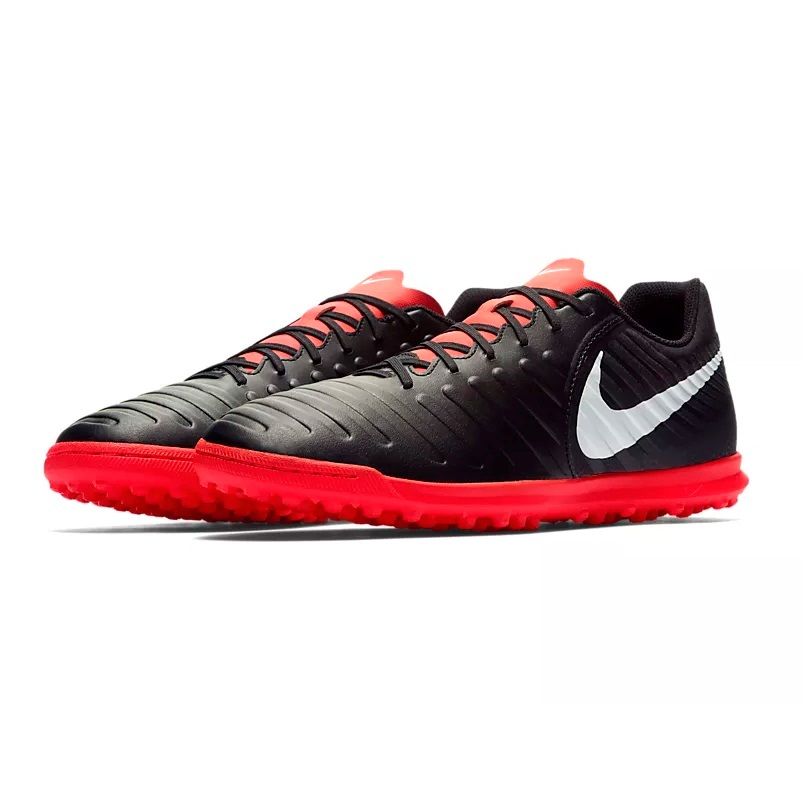 Шиповки черные Nike Tiempo Legend отличного качества прекрасно подойдут для тренировок новичков и профессионалов. Модель изготовлена с использованием синтетической кожи, что делает посадку мягкой и плотной. Имеется подкладка из пеноматериала для амортизации при ударе мяча и предотвращения растяжения кожи. Внутренний язычок усиливает плотность посадки. Внутри обуви имеется подкладка и литая стелька с амортизационными качествами. Она усиливает ощущение комфорта и не позволяет стопе скользить. Центральная шнуровка надежно фиксирует обувь на ноге. Подошва выполнена из износостойкой резиновой смеси с выраженным протектором для надежного сцепления.