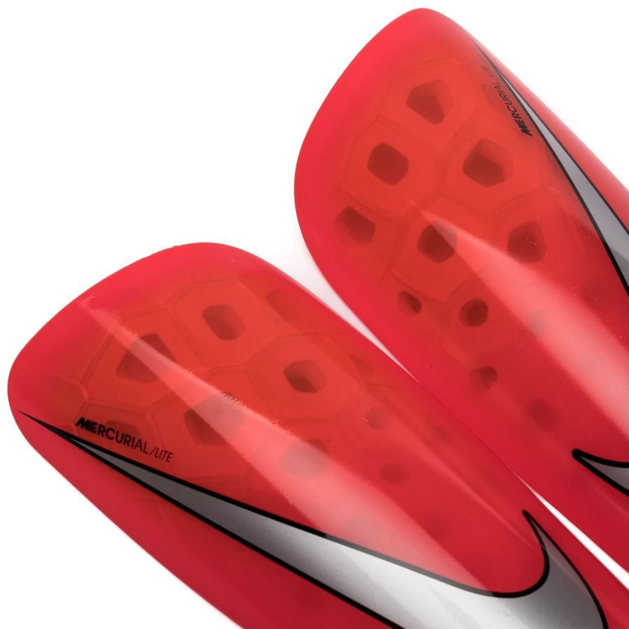 Щитки футбольные NIKE MERCURIAL LITE SP2120-610 наиболее популярная модель создает оптимальный уровень защиты, имеет плотную и комфортную посадку. Щитки сформованы в соответствии с анатомическими контурами голени правой и левой ноги, что гарантирует плотную и комфортную посадку на ноге. Корпус щитка, выполненный из высокопрочного материала K-resin, устойчив к механическим воздействиям и надежно защищает голень при ударах. С внутренней стороны корпус выстлан вспененным, легким материалом EVA, который отличается великолепным свойством демпфирования ударных нагрузок, существенно уменьшая болевые ощущения при ударах. Внутреннее наполнение разделено на сегменты, что придает щиткам оптимальную гибкость и способствует хорошей вентиляции внутреннего пространства. Щитки фиксируются на голени с помощью высокоэластичных рукавов, которые производятся из сетчатого материала и отличаются легкостью и хорошей воздухопроницаемостью.