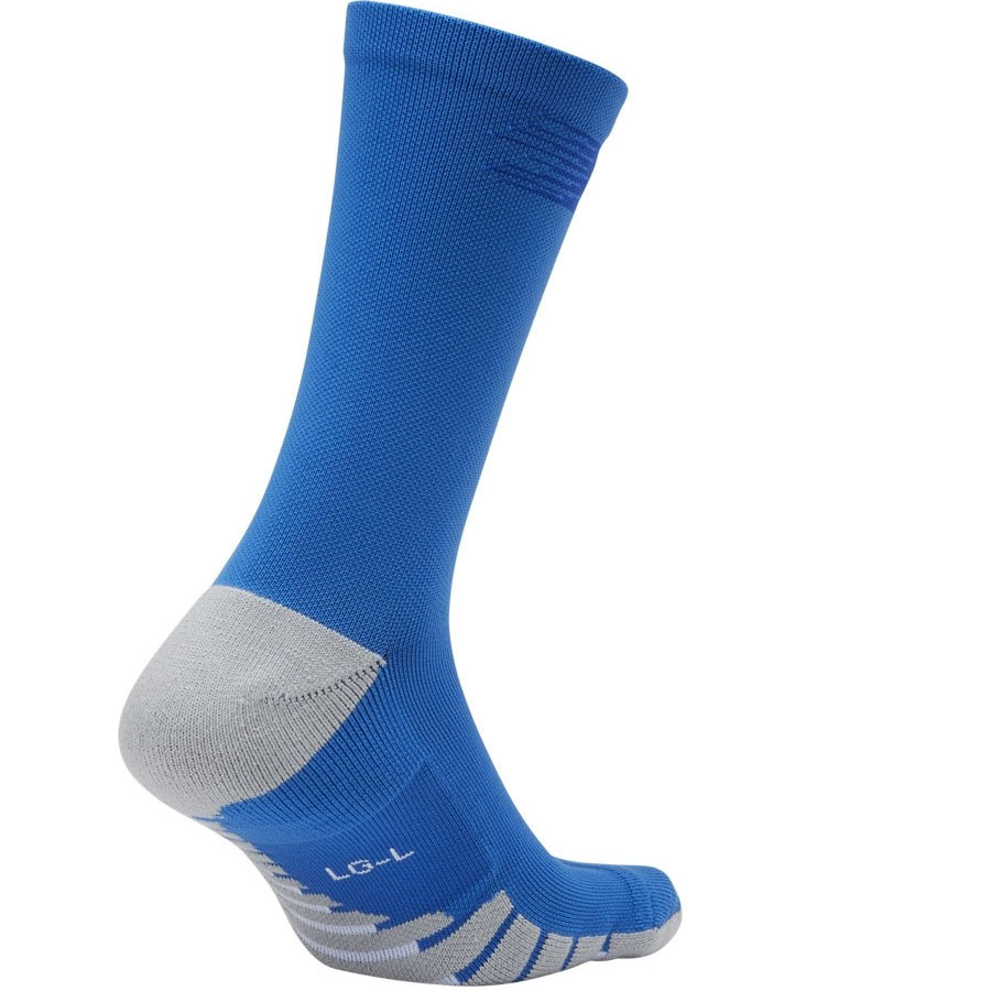 Качественные спортивный носки для занятий и тренировок, мужская взрослая модель NIKE MATCHFIT CREW-TEAM SX6835-463 имеют лазурную расцветку и обеспечивают спортсмену яркий внешний вид, благодаря логотипу производителя, в виде галочки, который расположен на паголенке, модель имеет фирменный внешний вид. Эта модель отлично подойдет для игры в футбол или другие активные виды спорта, может использоваться как начинающими игроками, так и опытными футболистами. Носок комфортно сидит на ступне, надежную фиксацию обеспечивает мягкая, эластичная резинка, которая расположена в паголенке, что исключает сползание и перекручивание носков во время эксплуатации. Крой носков для провой и левой ноги имеет отличие, для быстрой и легкой идентификации на подошве нанесены литеры L –для левой ноги и R для правой. Модель связана из качественного синтетического трикотажа, что обеспечивает прекрасные потребительские качества, высокую прочность, износостойкость. Подошва имеет дополнительное усиление, что исключает протирание. Наличие специальных вставок обеспечивает надежную фиксацию ноги в обуви, что исключает ерзание и перекручивание. В состав трикотажа входят волокна нейлона 67 %, хлопка 23 %, полиэстера 6 % и спандекса 4 %. Ткань эластичная и при этом прекрасно держит форму, не вытягивается, после растяжения возвращается в первоначальное состояние, наличие вставок из эластичного материала обеспечивает дополнительную поддержку. Хорошие вентиляционные качества обеспечивают хороший воздухообмен. рименение специальной технологии Dri-FIT, обеспечивает комфорт и сухость для ног, в структуру нитей вплетены особые тонкие волокна, которые одной стороной впитывают пот с поверхности тела, выводят его на наружный слой для испарения. Изделие отлично стирается в автоматическом режиме, не линяет и быстро высыхает. В упаковке одна пара.