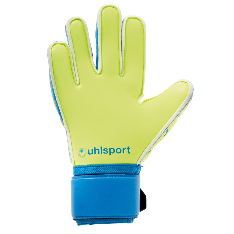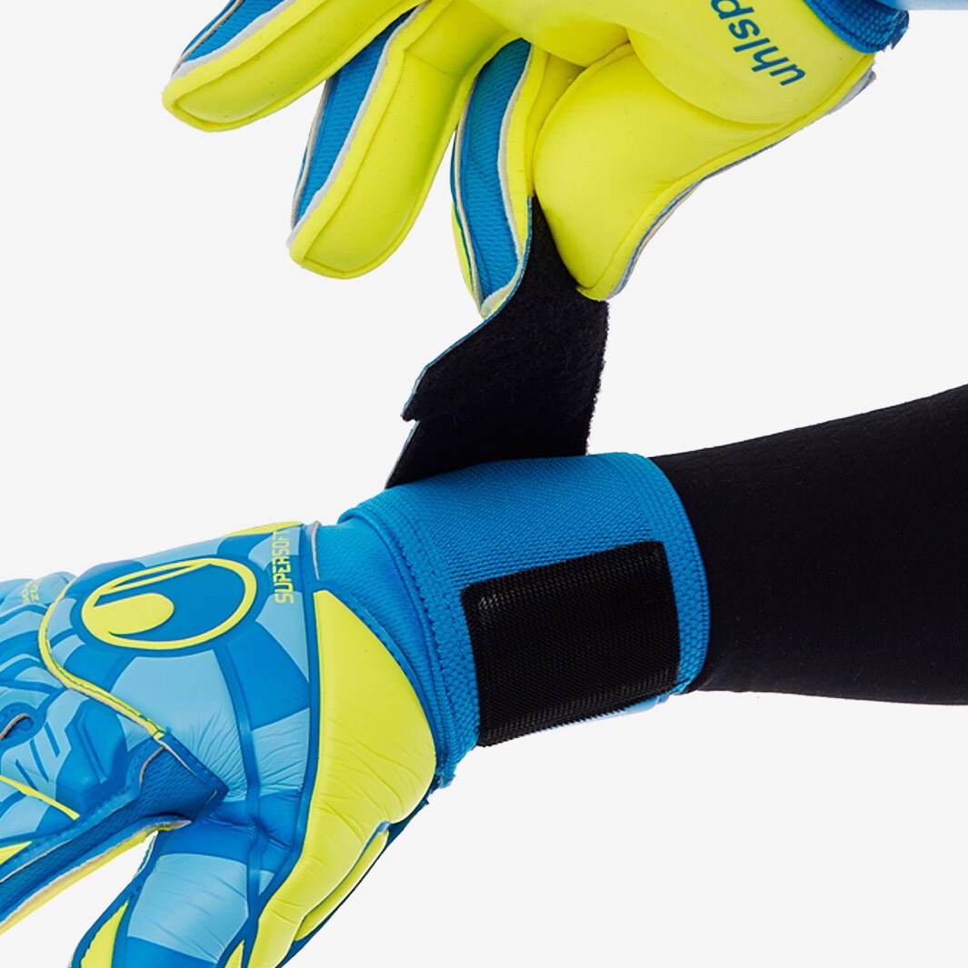 Латексный ремешок полной длины и эластичная манжета в перчатках Ухлспорт Радар Контрол Супер Софт надежно фиксируют перчатки на запястье, стабилизируя его.