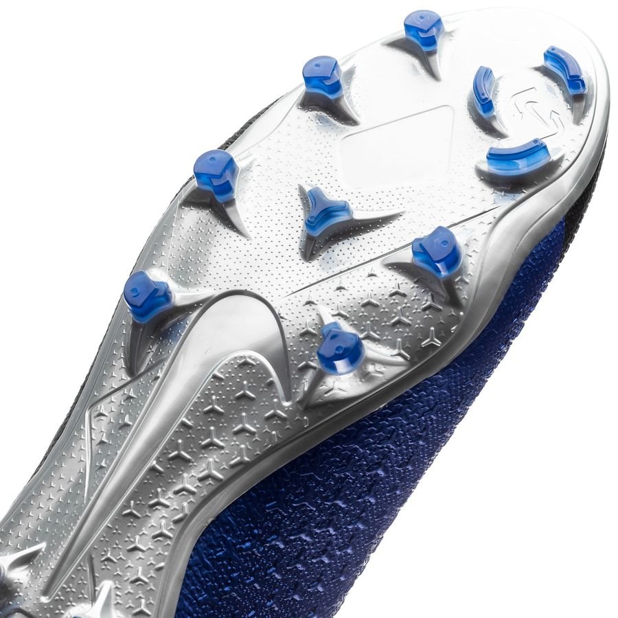 Профессиональная модель футбольных бутс NIKE PHANTOM VISION ELITE DF FG AO3262-004 SR используется на сухих полях с натуральным, травяным газоном. Эластичная конструкция верха с минимальным количеством швов и стыкующих элементов обеспечивает плотную и максимально комфортную посадку с первого шага, точно соответствуя анатомическим контурам стопы. Созданный с использованием эластичного материала, завышенный ворот Dynamic Fit Collar охватывает лодыжку, фиксируя и поддерживая голеностоп. Сетчатый материал, используемый для создания внутреннего слоя Quadfit Mesh, точно охватывает стопу, создавая по-настоящему индивидуальную посадку. Система шнуровки Ghost Lace закрыта внешней накладкой, что обеспечивает чистый контакт мяча с поверхностью бутс. Используемый в создании внешнего слоя текстурированный материал Flyknit закрывает шнуровку и формирует области с высокой воздухопроницаемостью и эластичностью. Для создания повышенной восприимчивости при работе с мячом материал верха имеет рельефную микротекстуру. Поверхность бутс имеет дополинетльную обработку поверхности, созданную по технологии All Conditions Control (ACC), которая повышает уровень контроля мяча в различных погодных условиях. Внутренняя подкладка и стелька выполнены с применением технологии Nike Grip, что помогает удерживать стопу, и предотвращает любое ее смещение внутри бутсы при движении. Опорная плита подошвы Hyperprecision и гибридная конфигурация шипов обеспечивают быструю реакцию на изменение скорости движения, способствуют созданию устойчивости. Вращательная зона ForeFoot позволяет быстро маневрировать на поле, улучшая сцепление.