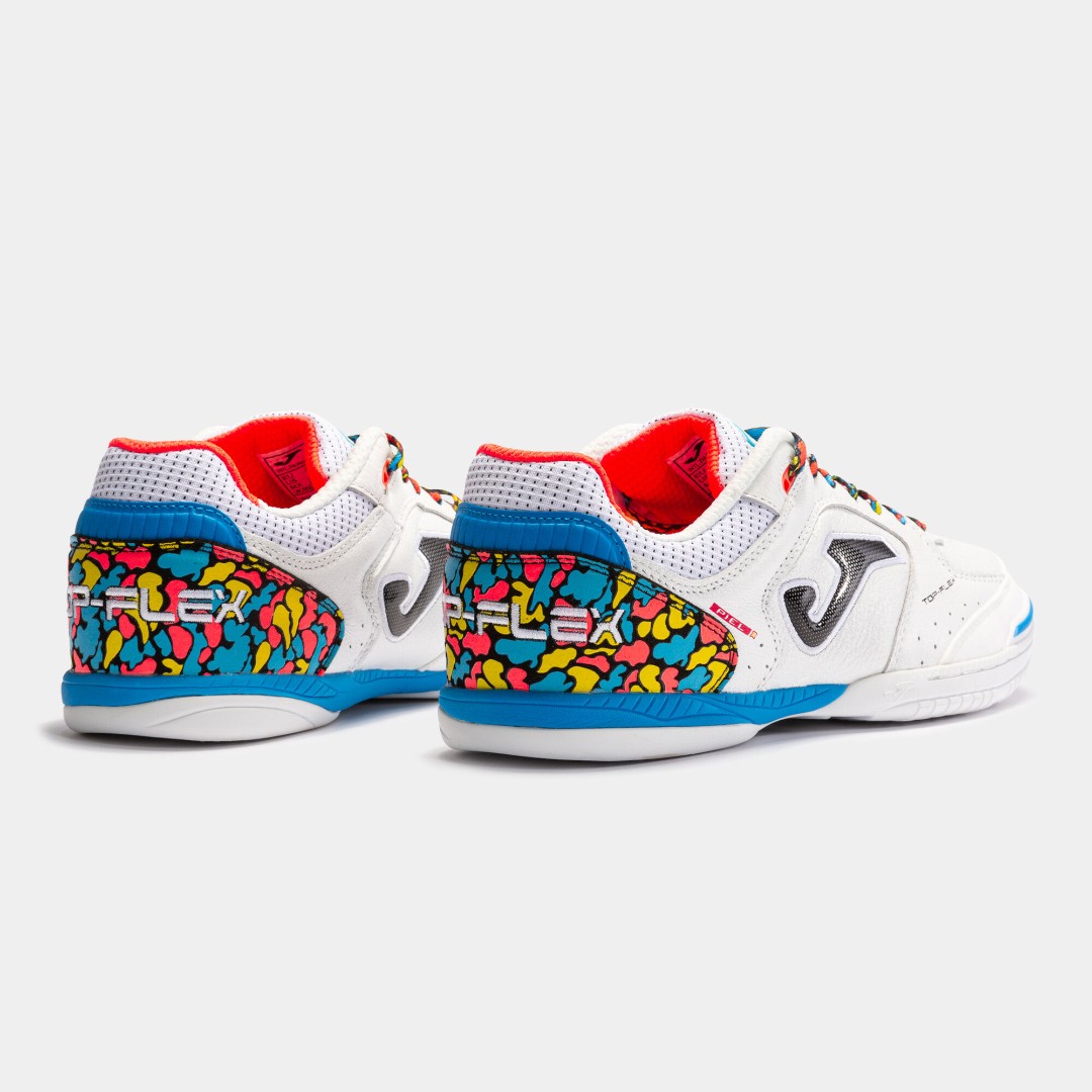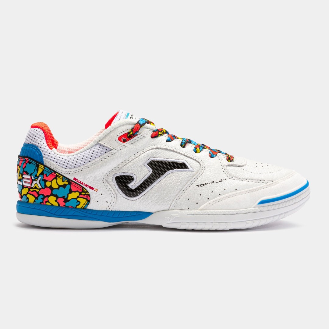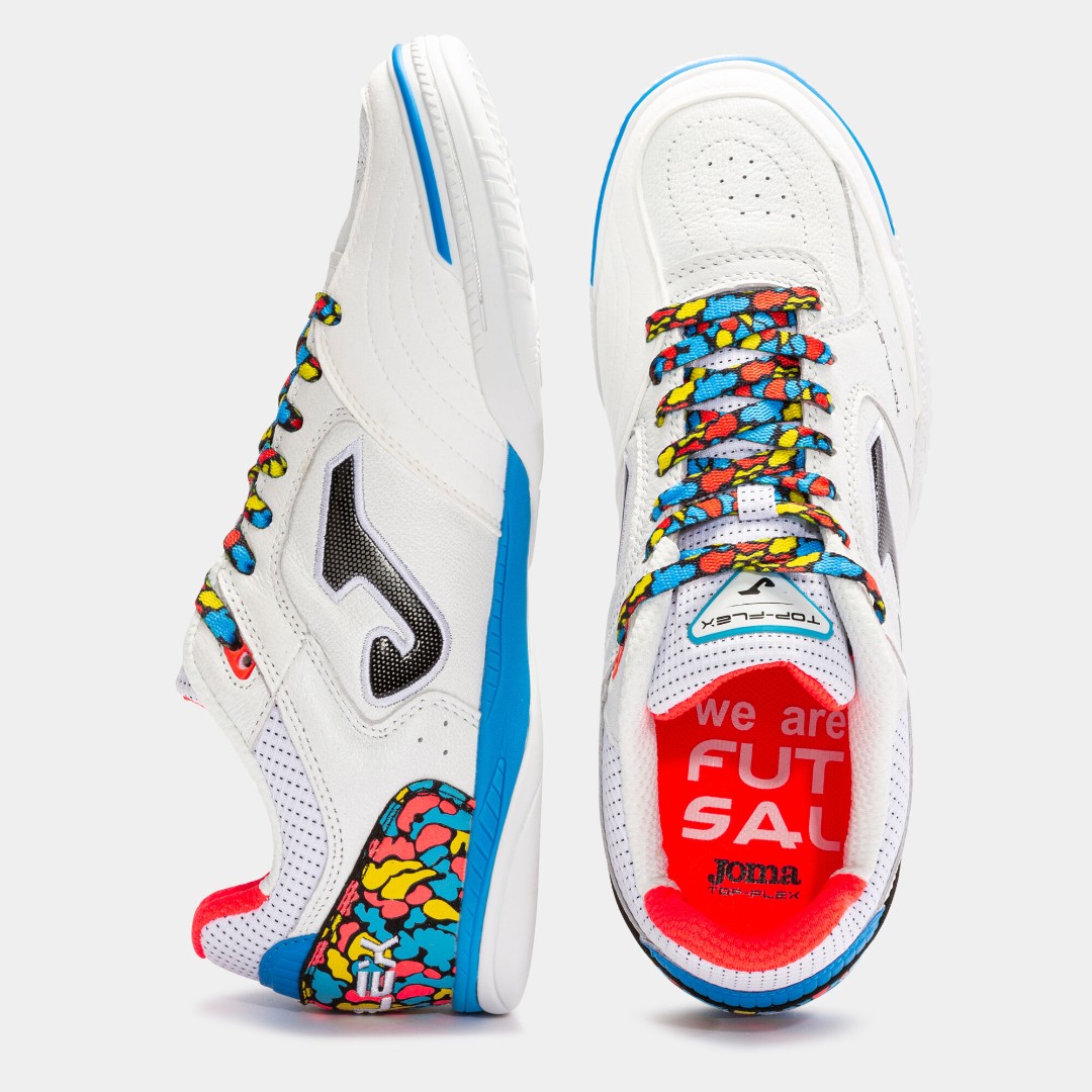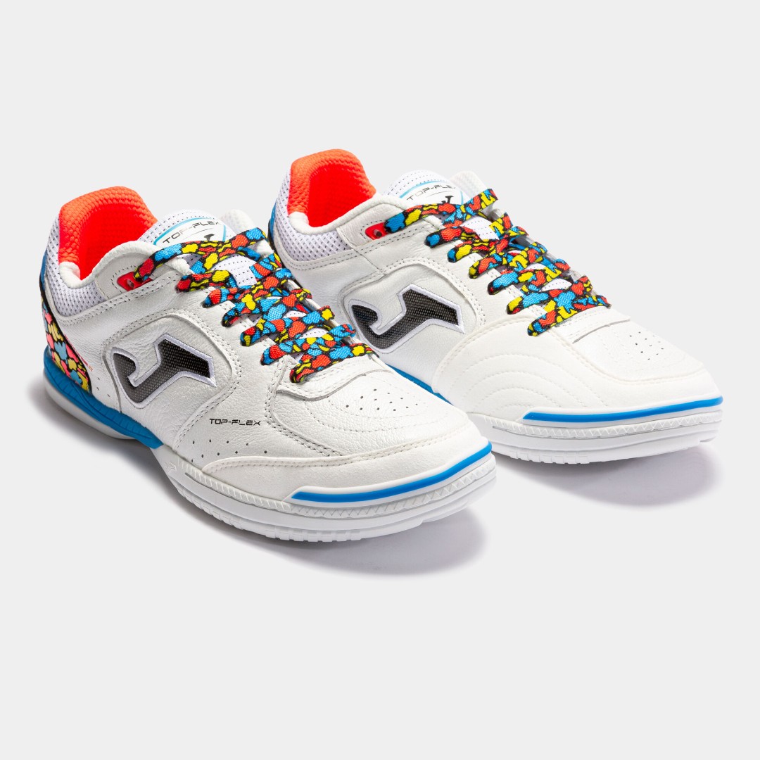 Профессиональные Футзалки Joma TOP FLEX TOPW2254IN. В подошве сочетаются гибкость, подгонка к стопе и устойчивость. Она обеспечивает необходимую гибкость и устойчивость в нужный момент.  Верхняя часть выполнена из гибкой высококачественной кожи. На внутренней поверхности используется нейлон, обладающий высоким качеством и прочностью. Также используется технология PROTECTION для защиты носка во время ударов и обеспечения устойчивости.
