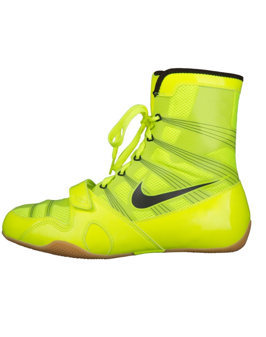 Боксерки NIKE HYPERKO – комфортная и сверхлегкая профессиональная обувь имеет анатомически правильную, гибкую конструкцию, которая способствует легкому сгибанию, обеспечивает большую амплитуду движения ноги. Верх боксерок представляет собой сочетание прочного синтетического материала, расположенного в местах максимального износа, и легкой сетки, которая обеспечивает отличную воздухопроницаемость модели и способствует снижению веса боксерок. Для придания боксеркам максимальной прочности и надежной фиксации стопы, модель имеет прочный каркас из кабелей Flywire, которые включены в материал верха и закреплены на подошве. Каркас позволяет удерживать стопу при резких боковых, разнонаправленных движениях. Дополнительную устойчивость и поддержку создает ремешок на липучке, расположенный в передней части стопы. Шнуровка, расположенная в центре, удерживает язычок, исключая его деформацию и смещение при активном движении. Внутренний язычок имеет специальную конструкцию, которая скрывает и фиксирует узел шнуровки и свободные концы шнурков, предотвращая их самопроизвольное развязывание. Канавка на внешней подошве в месте анатомического сгиба стопы сохраняет естественность движений стопы. Резиновая подошва имеет протектор с нескользящим рисунком, создающий эффективное сцепление с покрытием на ринге. Данная модель выпущена ограниченной серией и входит в коллекцию Manny Pacquiao.