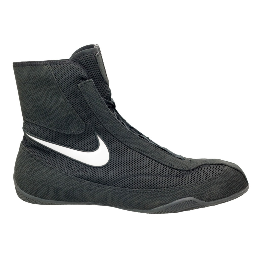 Боксерки NIKE OLY MID используются профессиональными бойцами и призваны обеспечить маневренность и скорость передвижения по рингу. Правильная анатомическая конструкция боксерок способствует увеличению амплитуды движения и легкому сгибанию ноги. Верх боксерок выполнен из прочной и легкой, нейлоновой сетки и отличается хорошей воздухопроницаемостью, мягкостью, эластичностью и удобной посадкой. Несущие элементы верха, подверженные нагрузкам при активном движении, имеют дополнительное усиление, что увеличивает износостойкость модели. Высота голени в данной модели 7" (18 см). Плотная, симметричная шнуровка снижает риск травм при энергичном движении по рингу. Внутренний язычок скрывает и фиксирует узел и свободные концы шнурков, исключая их самопроизвольное развязывание. Упругий материал Phylon, из которого изготавливается промежуточная подошва, равномерно распределяет ударные нагрузки, уменьшая болезненные ощущения в отдельных участках стопы при активном движении, придает необходимую устойчивость и обеспечивает максимальный комфорт. Внешняя подошва выполнена из прочной резины и имеет специальный рисунок протектора, который создает уверенное сцепление с любым покрытием на ринге. Вес 266 грамм.