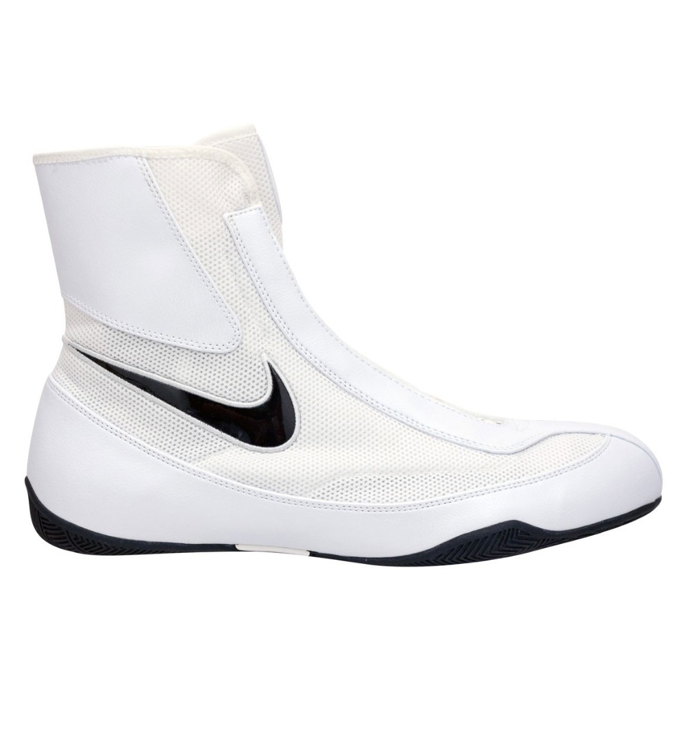 Боксерки NIKE OLY MID разработаны для профессиональных спортсменов и призваны обеспечить комфорт, максимизировать маневренность и быстроту передвижения на ринге. Удобная и легкая модель имеет верх, выполненный из комбинации материалов – легкой и прочной, нейлоновой сетки и синтетического материала, расположенного в местах подверженных максимальным нагрузкам при движении. Такая комбинация позволила получить максимально легкую и удобную обувь, обладающую отличной воздухопроницаемостью, эластичностью, гибкостью и высокой износостойкостью. Боксерки с высотой голени 7" (около 18 см) отличаются хорошей фиксацией голеностопного сустава. Специальная конструкция внутреннего язычка скрывает и фиксирует узел шнуровки и свободные концы шнурков, предотвращая их самопроизвольное развязывание. Симметричная шнуровка удерживает внутренний язычок, исключая его смещение при энергичном движении по рингу. Внутренняя стелька из упругого материала обеспечивает равномерное распределение нагрузки на стопу, способствует правильному и удобному положению ноги в боксерках. Промежуточная подошва из упругого материала Phylon создает необходимую устойчивость ноги, обладает высокой эластичностью, упругостью и низким весом. Канавка на внешней подошве в месте анатомического сгиба стопы сохраняет естественность движений стопы. Подошва, сделанная из высокопрочной резины, создает эффективное сцепление с покрытием на ринге за счет нескользящего рисунка протектора. Вес 266 грамм.